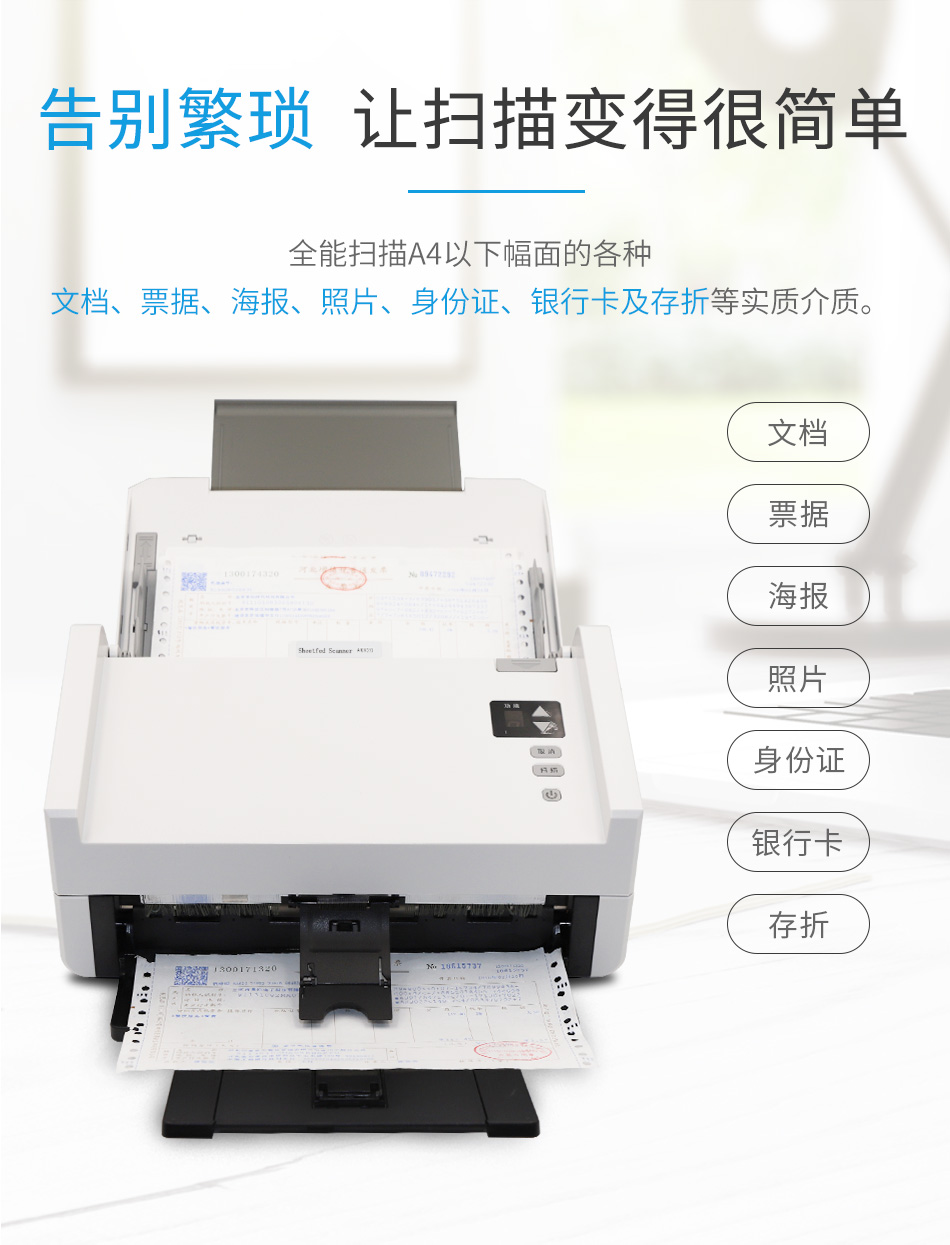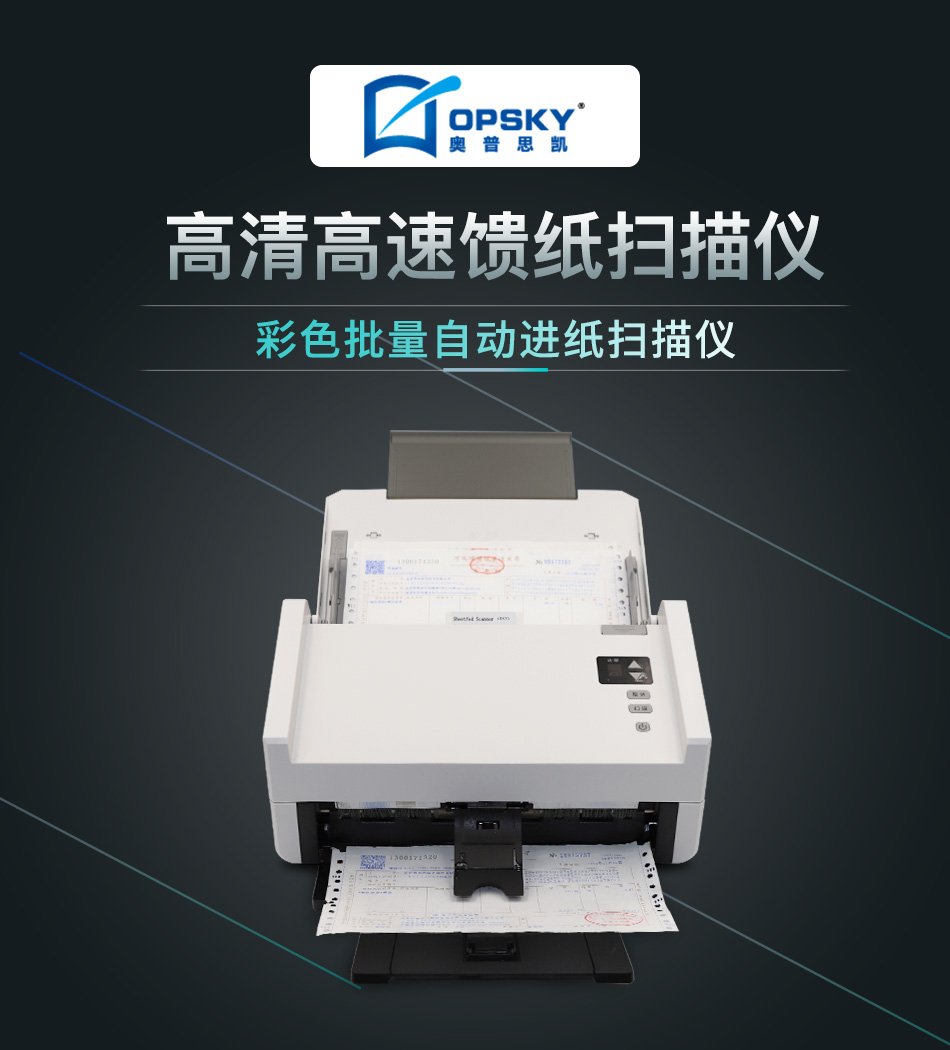 奧普思凱(OPSKY) 饋紙式掃描儀高清彩色雙面連續(xù)大容量自動進紙辦公設(shè)備發(fā)票文檔多介質(zhì)掃描 OK8230雙面彩色掃描儀(45頁90面/分鐘)